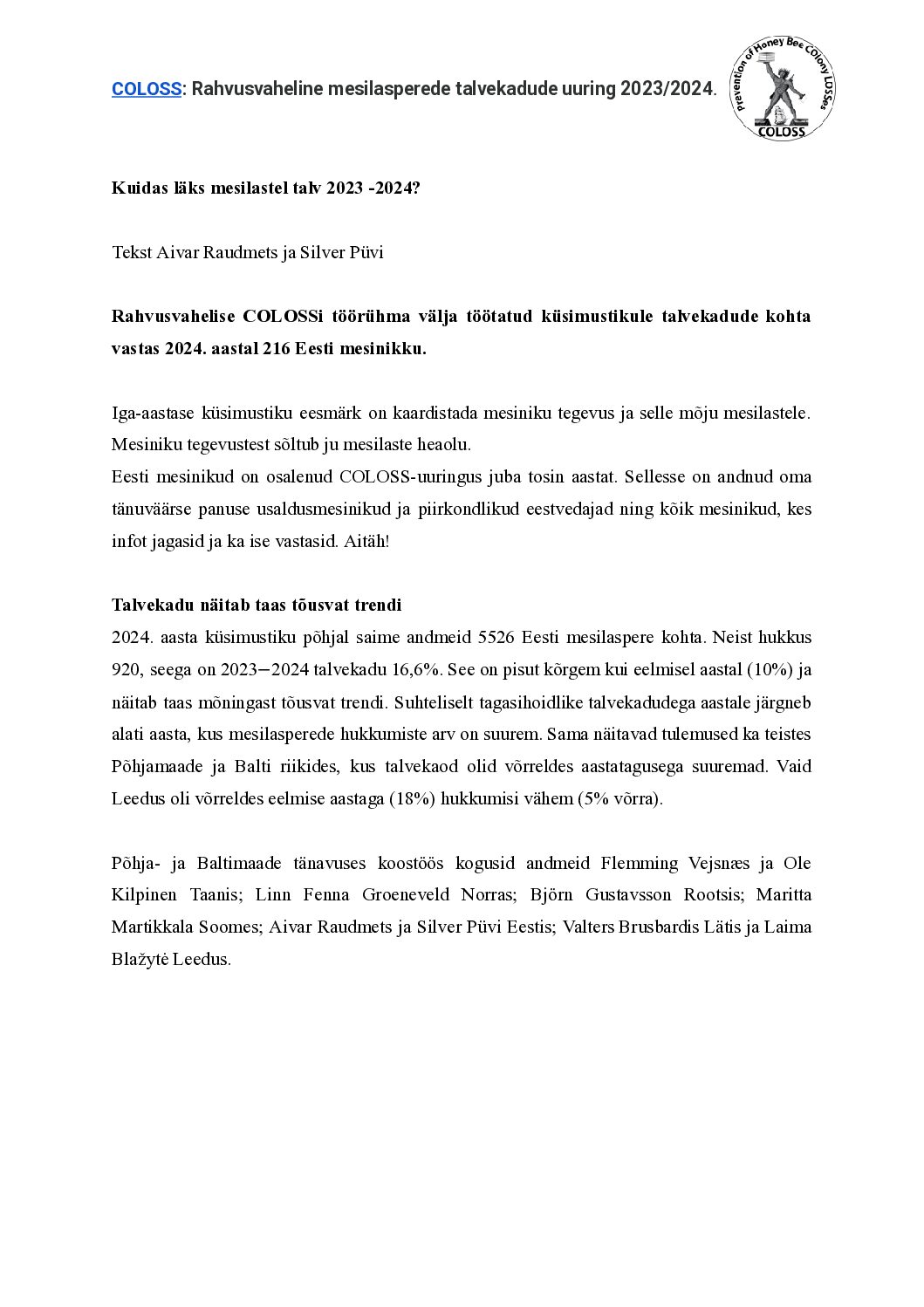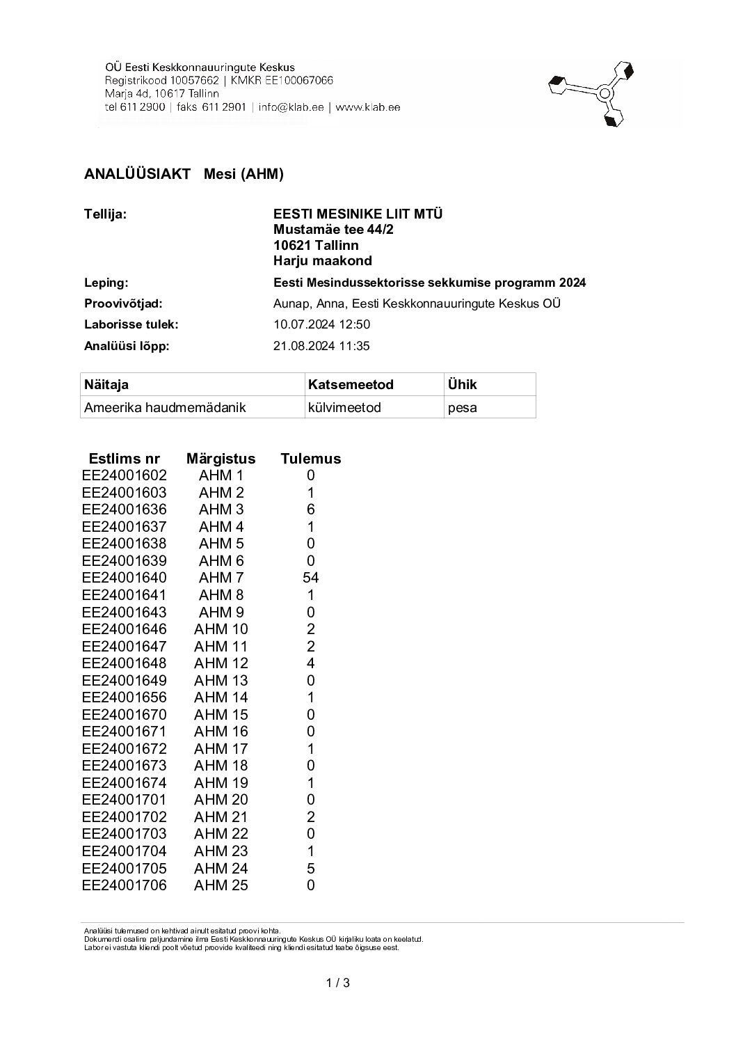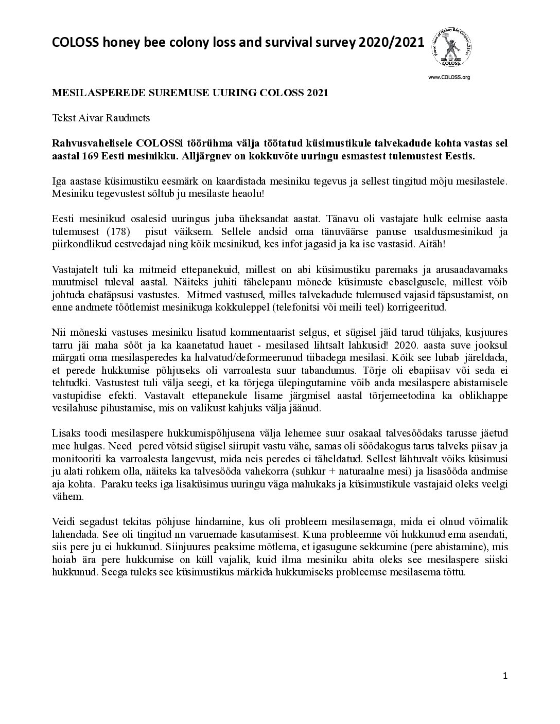 Published by Urmas on 24. nov. 2024 Pilootuuringu eesmärk oli kirjeldada nelja-viie kõige olulisema mesilaste RNA-viiruse (DWV A+B, CBPV, ABPV, SBV) esinemist erinevatel Eestis levinud mesilaste alamliikide (kraini, itaalia, euroopa tumemesilane, buckfast) või […]