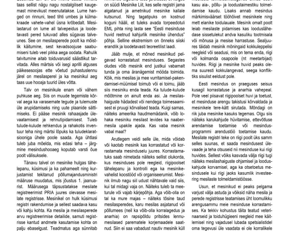 Märkmeid Mesindusprogrammi juhtkomisjoni koosolekult