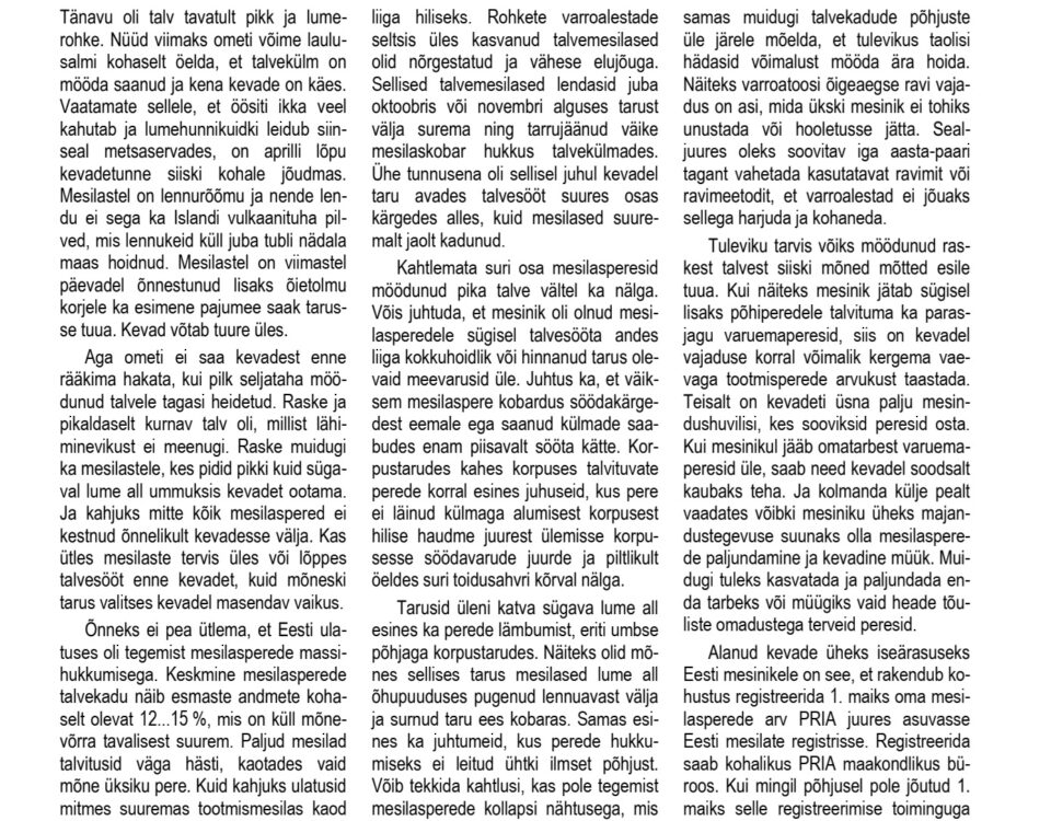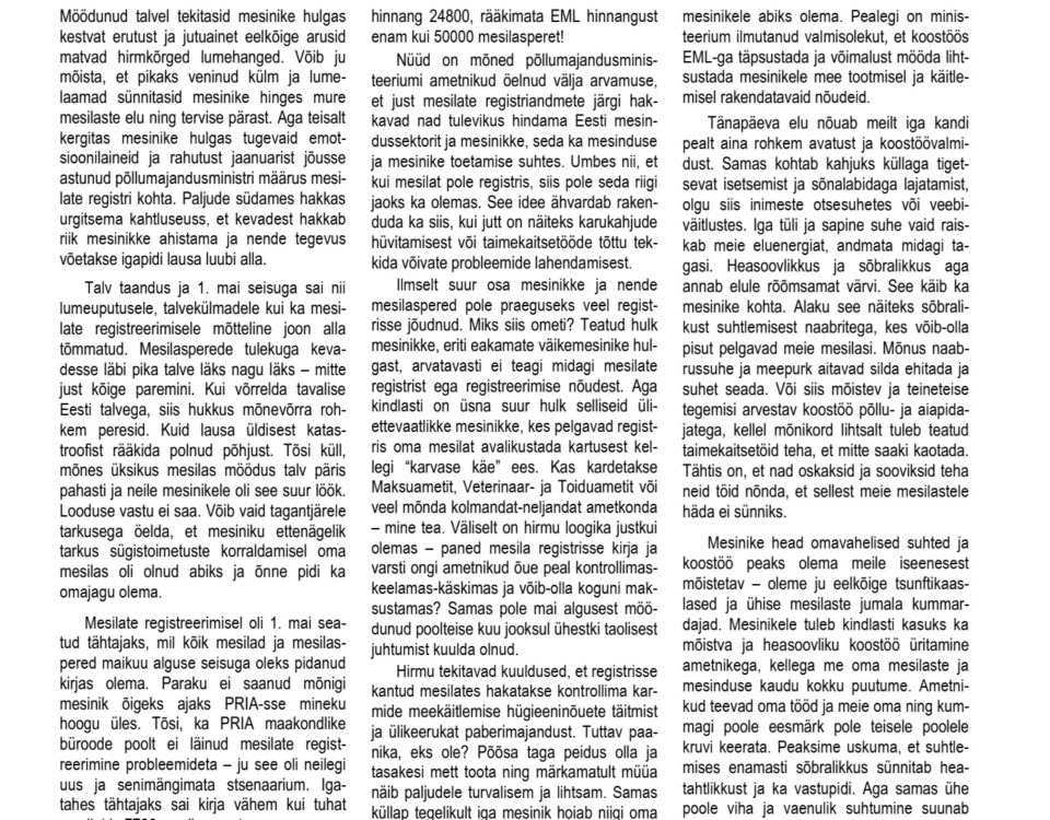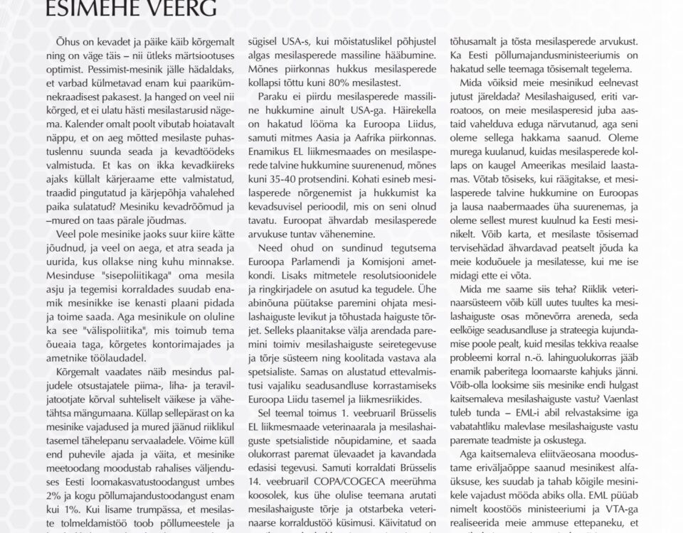 Euroopa Toiduohutusamet avaldas aruande mesilaste suremusest