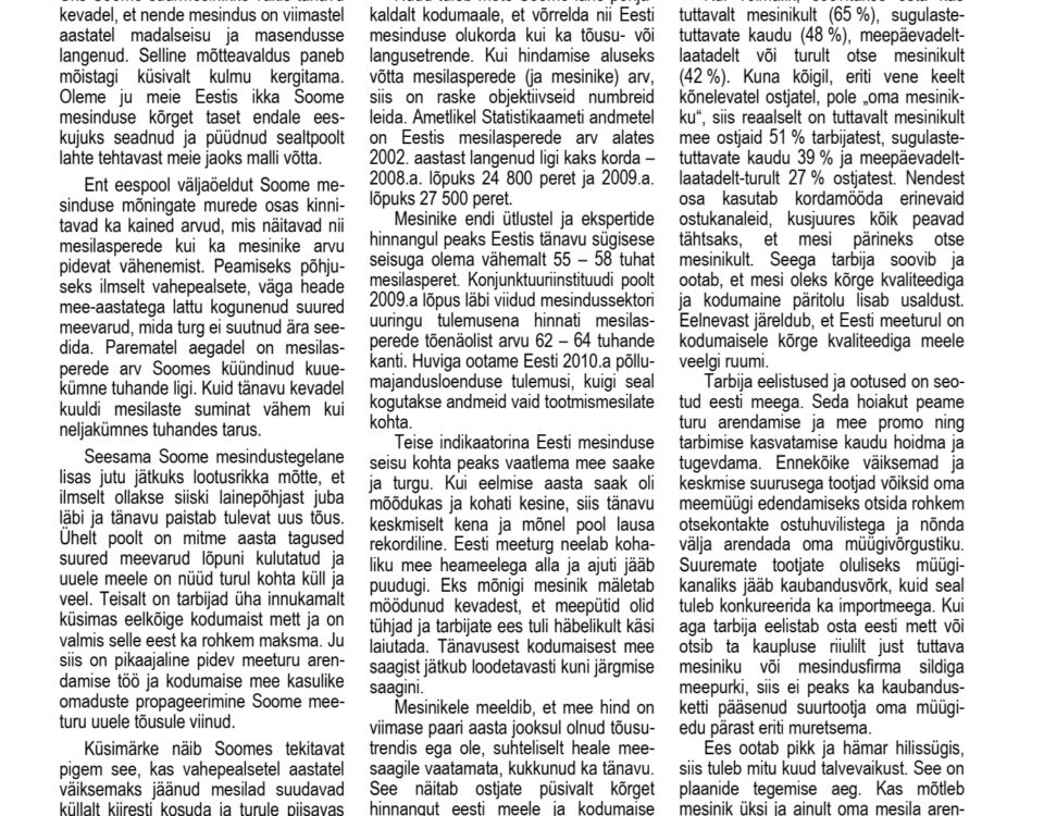 „Mee tootmise ja turustamise arendamise Eesti riiklik programm 01.09.2010 – 31.08.2013“ tutvustus