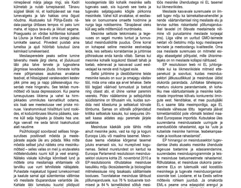 Eesti Mesilaste Tõuaretajate Selts aastal 2010