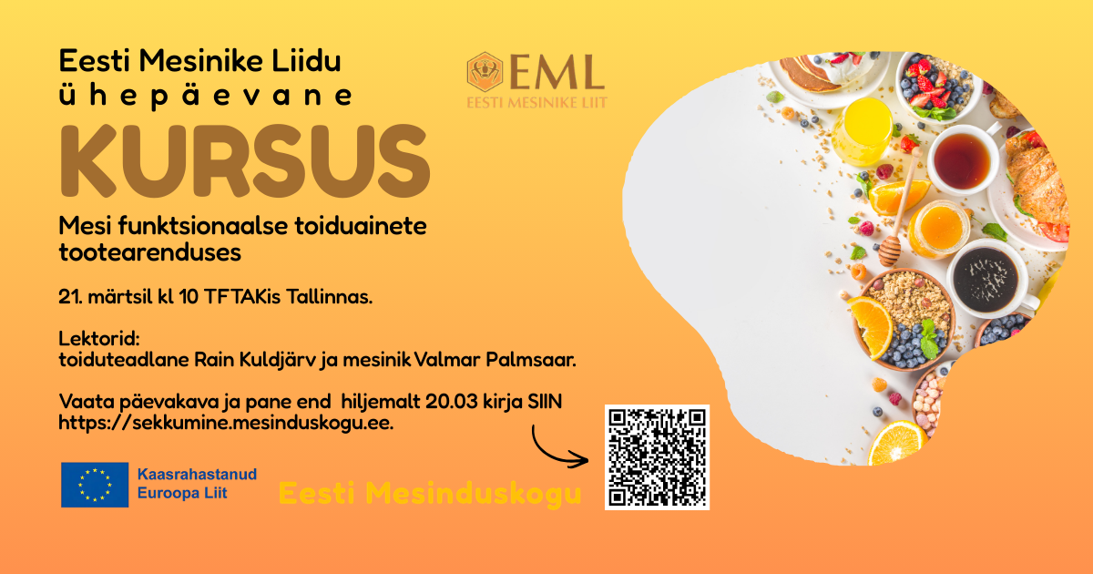 Ühepäevane kursus, teemal “Mesi funktsionaalsete toiduainete tootearenduses”