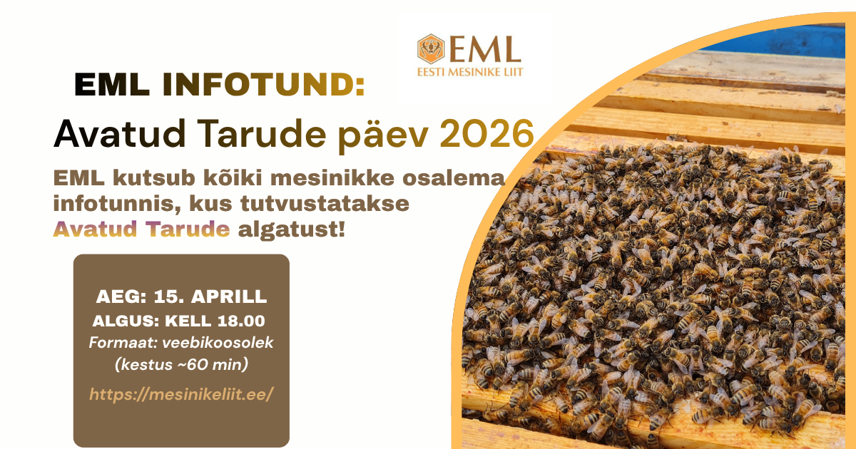 Eesti Mesinike Liit kutsub kõiki mesinikke osalema infotunnis, kus tutvustatakse Avatud Tarude algatust ning jagatakse praktilisi juhiseid üritusel osalemiseks. Infotunni eesmärk on anda selge ülevaade algatusest, selle korraldusest […] |
